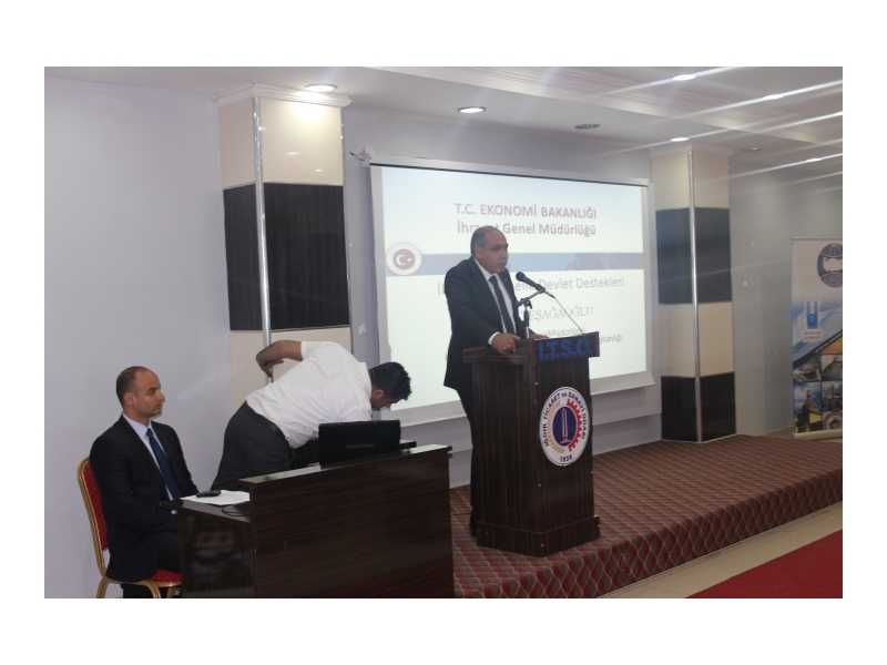 Odamız Konferans Salonunda düzenlenen ve Odamız Yönetim kurulu başkanı Kamil Arslan'ın açılış konuşmasıyla başlayan 2 bölümden oluşan seminerin ilk bölümünde Ekonomi Bakanlığı tarafından ihracat yapan ve yapacak olan firmalara devlet destekleri anlatıldı. Ekonomi Bakanlığı İhracat Genel Müdürlüğü İhracat Geliştirme Uzmanı Ümit Ateşağaoğlu uluslar arası rekabetçiliğin geliştirilmesinin desteklenmesi, Pazar araştırması ve pazara giriş belgelerinin desteklenmesi, Yurtdışında gerçekleştirilen fuar katılımlarının desteklenmesi konusuna değinirken, Türk Eximbank Sigorta Müdür Yardımcısı Ece Aysun CÖMERT, ihracat yapan firmalara Türk Eximbank tarafından sağlanan ihracat kredi sigorta ve garanti programları hakkında bir sunum yaptı.