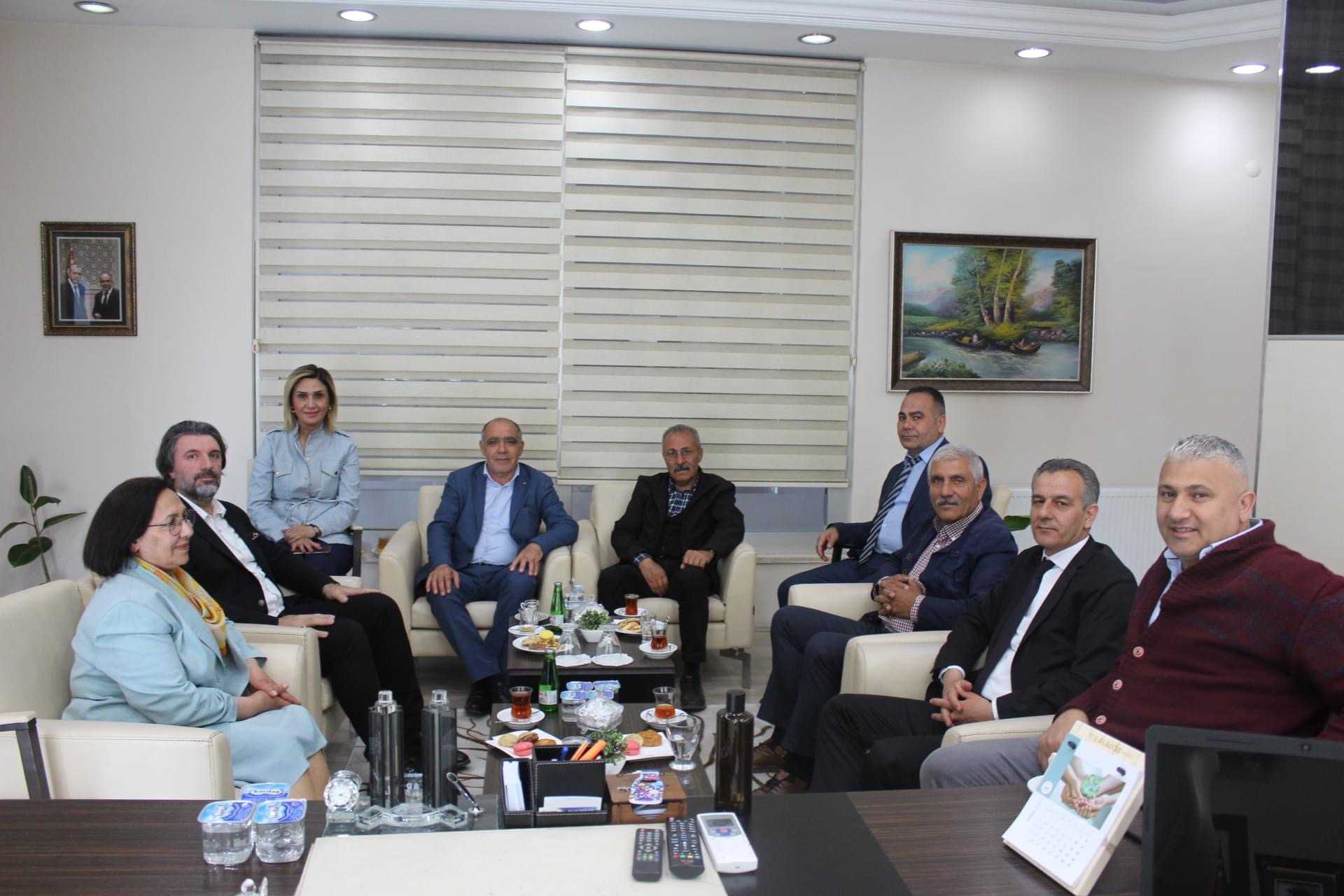 Başkanlık makamında gerçekleşen ziyarette heyeti Yönetim Kurulu Başkanımız Kamil Arslan ve Meclis Başkanı Tahir Talay karşıladı. Yönetim Kurulu üyemiz Mehmet Yıldız ve Meclis üyemiz Mustafa İçen ‘de ziyarette hazır bulundu.